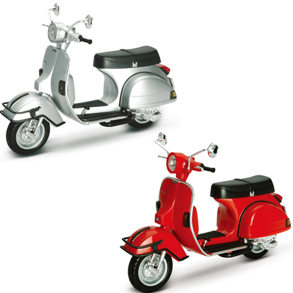 Die Vespa P200E aus dem Jahr 1978 im Massstab 1:12 (Länge ca. 14cm) wird in rot und silber assortiert geliefert.