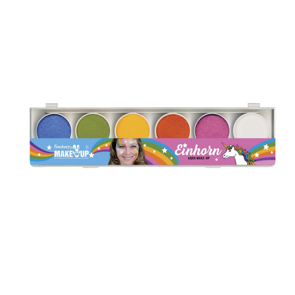 Aqua Malkasten mit 6 Farben, 1x weiss, 1x pink, 1x orange, 1x gelb, 1x blau, 1x grün