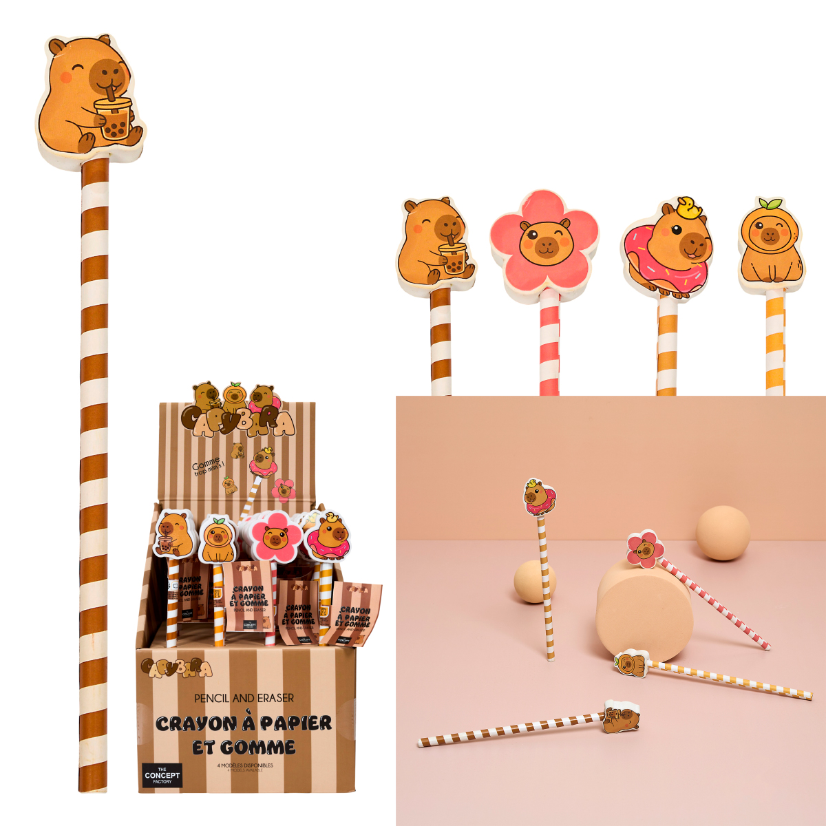 Bleistift Capybara mit Radiergummi, 4-fach assortiert