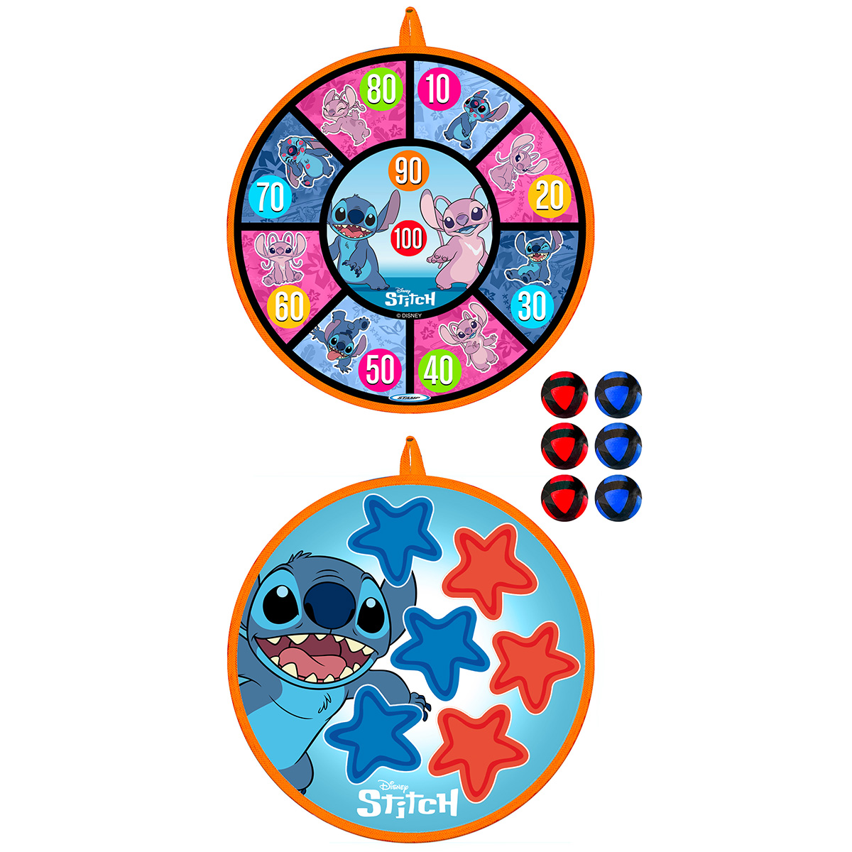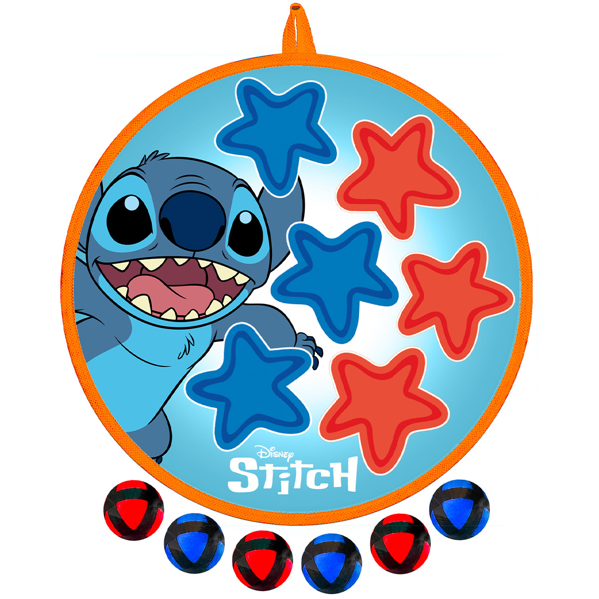 Eine große 36 cm Zielscheibe mit weichen Klettbällen im beliebten Stitch-Design. Perfekt für Zielübungen ohne Verletzungsgefahr.