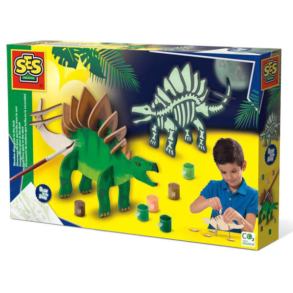 Cool, mit diesem Bastelset kannst du deinen eigenen Dinosaurier basteln! Setze zunächst den hölzernen Dinosaurier zusammen. Welche Farbe wirst du deinem Dinosaurier geben? Mit den sechs mitgelieferten Malfarben liegt die Entscheidung in deiner Hand! Noch schöner wird der Dinosaurier mit den mitgelieferten Aufklebern, die im Dunkeln leuchten. Tagsüber siehst du deinen selbstgebastelten Dinosaurier und nachts nur ein aufregendes Dinosaurierskelett.