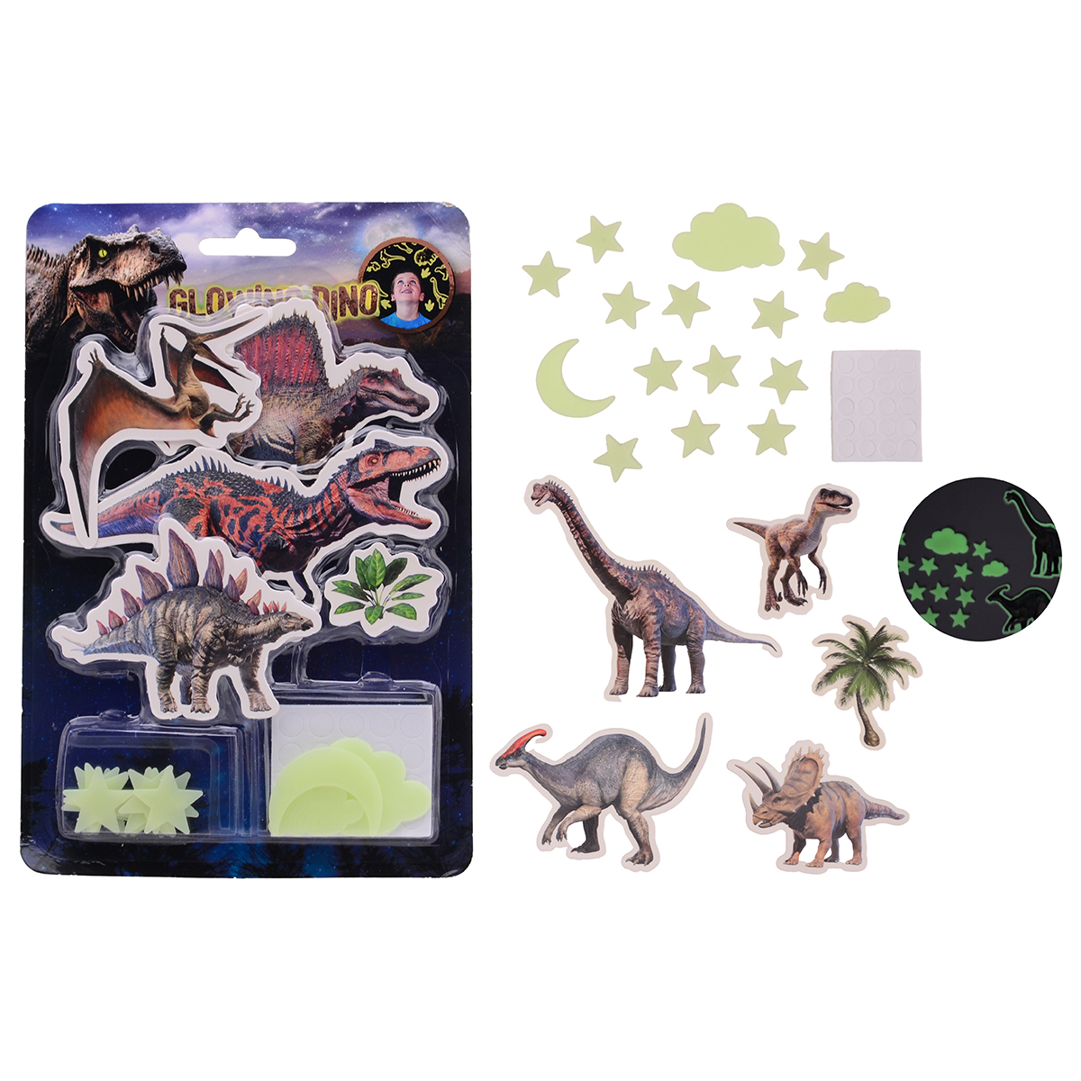 Die Dinos Sticker laden sich im Tageslicht auf und leuchten in der Nacht.