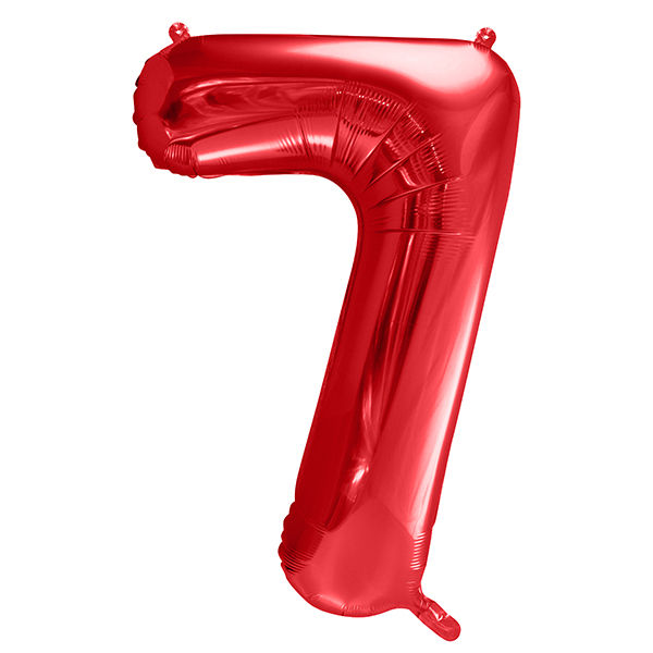 Metallisierter Folienballon, Ziffer ''7'' in Rot, Größe vor dem Aufblasen ca. 100 cm (39''), Größe nach dem Aufblasen ca. 86 cm (34''). Zum Aufblasen mit Luft oder Helium.