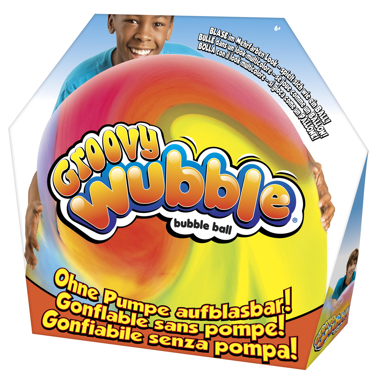 Sieht aus wie eine BLASE im Mehrfarben Look – spielt sich wie ein BALL! Perfekte Grösse, super weich und extrem leicht. Zum drinnen und draussen spielen sowie überall mitnehmen! Aufblasbar ohne Pumpe. Inklusive Mundstück und Anleitung.