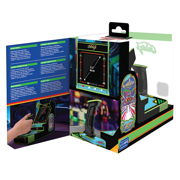 JOYSTICK PLAYER GALAGA PORTABLE RETRO ARCADE (2 SPIELE IN 1). Offiziell lizenzierte Titel. Hochauflösendes 3,2''-Farbdisplay im Hochformat. Mit einer Grafik, die vom Original-GALAGA-Arcade-Schrank inspiriert ist. Einzigartige Möglichkeit, Ihre Lieblingsspiele im Retro-Stil zu spielen. Intuitive Benutzeroberfläche. Eingebauter Lautsprecher mit Lautstärkeregler. 3,5-mm-Kopfhöreranschluss zum Anschliessen von Kopfhörern. Einstellbare Bildschirmhelligkeit. Stromversorgung entweder über 4 AA-Batterien (nicht im Lieferumfang enthalten) oder ein USB-C-Kabel (nicht im Lieferumfang enthalten). Perfekt für jedes Spielzimmer, Büro oder jede Vitrine! Zu den Titeln gehören GALAGA und GALAXIAN.