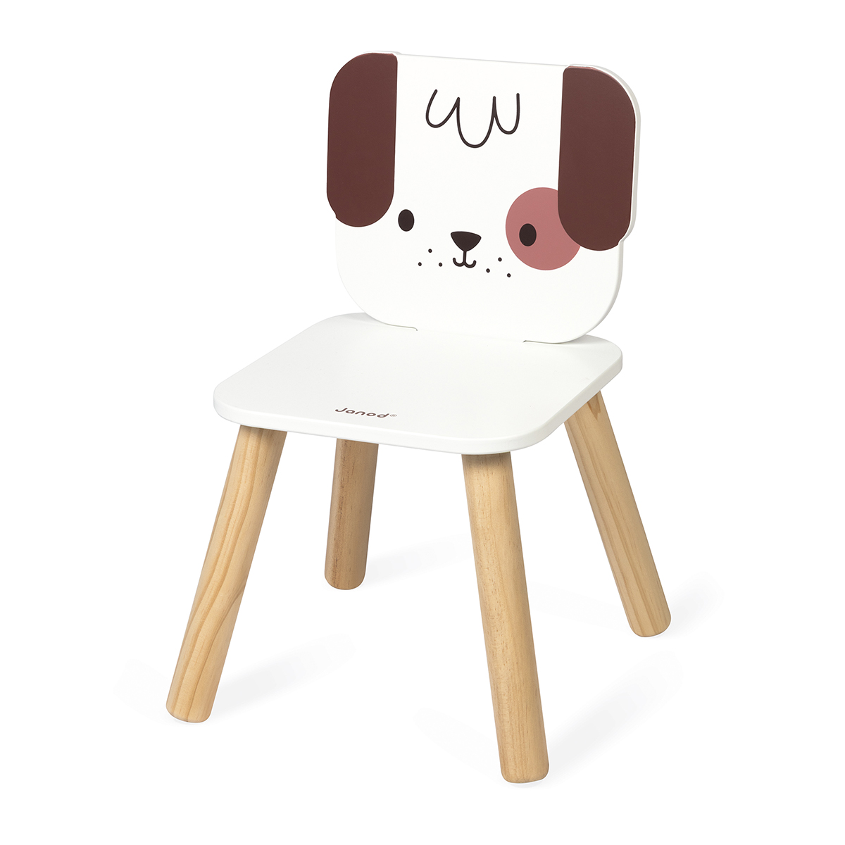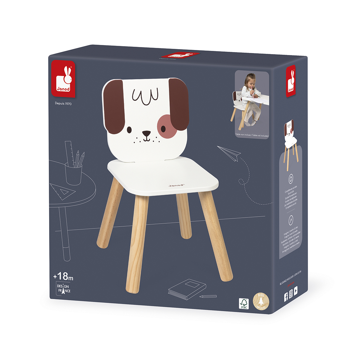 Der ideale Gefährte für ruhige und kreative Momente. Verleihen Sie dem Zimmer Ihres Kindes einen Hauch von Zärtlichkeit und Stil mit diesem Holzstuhl mit Hundemotiv, der sogar die Größeren begeistern wird. Er wurde speziell für Kleinkinder entworfen und vereint Sitzkomfort, Sicherheit und Ästhetik. Möbelstück aus Holz, für Kinder ab 18 Monaten.