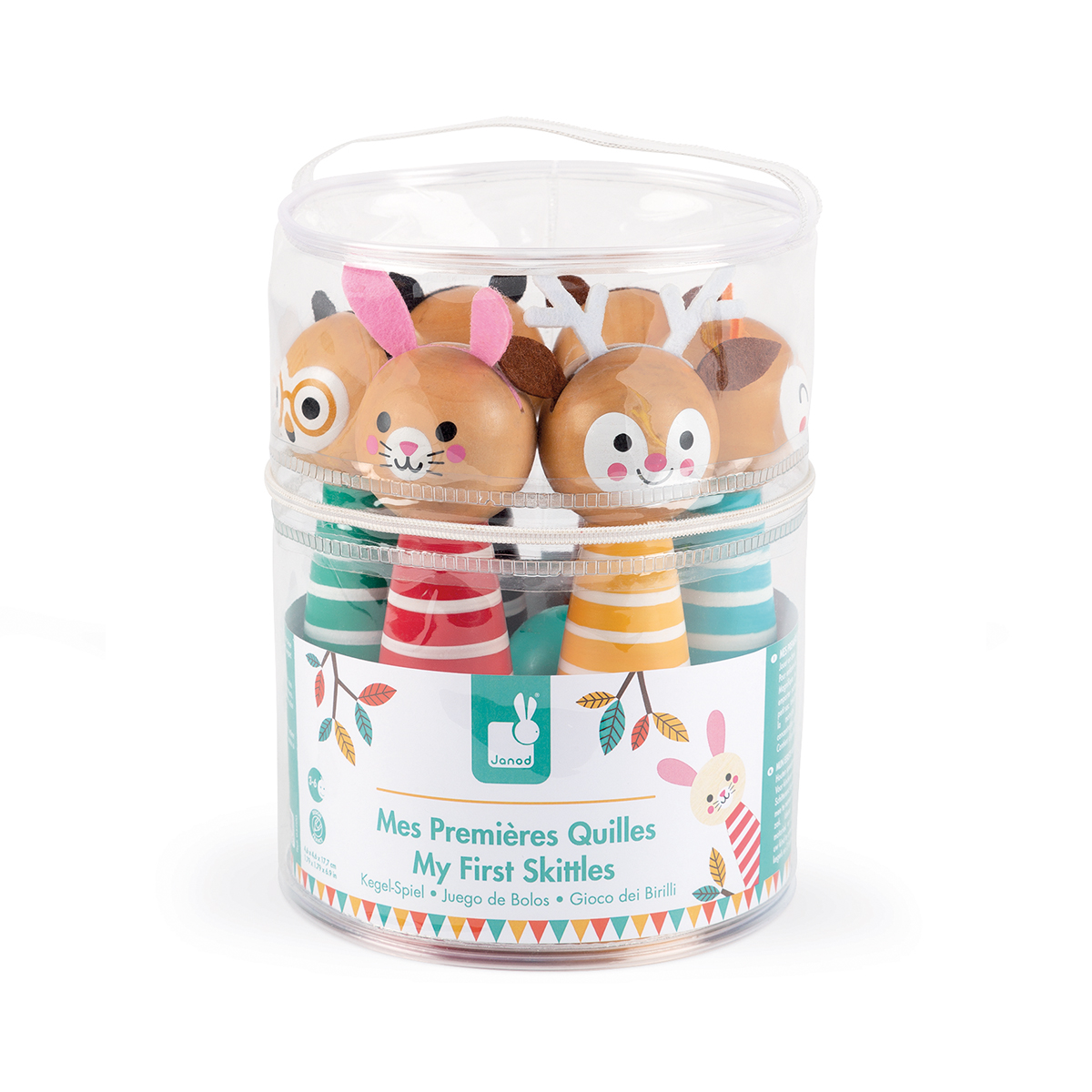 Hübsches Kegelspiel, das in seinem kleinen Beutel überallhin mitgenommen werden kann. Ideal zur Entwicklung der Feinmotorik und Konzentration Ihres Kindes. Enthält 6 Kegel und 2 Kugeln. Holz: Kirsche Plastiktüte mit griff. Hangtag.