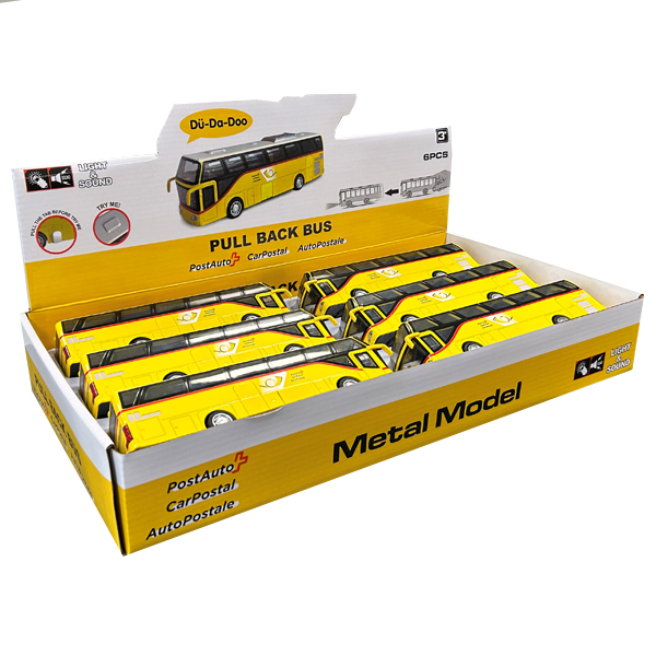 Postauto Bus mit Licht und Sound Dü-Da-Doo, Rückzugfunktion, aus Spritzguss, im Display.
