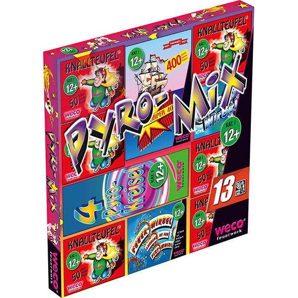 Set bestehend aus Knallteufeln, Lady-Crackers, Pyro-Kreiseln, Silberkreiseln und Feuerringen, Kat. 1, ab 12 Jahren
