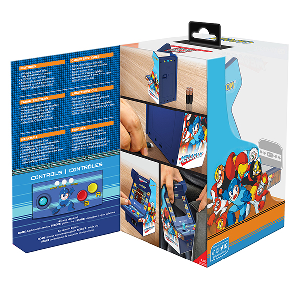 MICRO PLAYER PRO 6.7'' MEGA MAN PORTABLE RETRO ARCADE (6 SPIELE IN 1). Offiziell lizenzierte Titel. Vollfarbiger 2,75''-Bildschirm. Intuitive Benutzeroberfläche. Eingebauter Lautsprecher mit Lautstärkeregler. 3,5-mm-Kopfhöreranschluss zum Anschliessen Ihrer Kopfhörer. Einstellbare Bildschirmhelligkeit. Stromversorgung entweder über 4 AA-Batterien (nicht im Lieferumfang enthalten) oder über ein USB-C-Kabel (nicht im Lieferumfang enthalten). Perfekt für jedes Spielzimmer, Büro oder jede Vitrine! Zu den Titeln gehören Mega Man, Mega Man 2, Mega Man 3, Mega Man 4, Mega Man 5 & Mega Man 6.