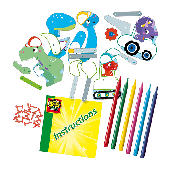 Junge Ingenieure aufgepasst! Mit diesem Papierkonstruktionsset von SES Creative können Kinder basteln, entdecken und ihr technisches Verständnis entwickeln. Die Teile lassen sich mit den Filzstiften ausmalen, und mit den Splinten können 4 real bewegliche Dinosaurier und Baufahrzeuge zusammengebaut werden. Drehe am Zahnrad oder bewege eine Achse und schau, was passiert! Es funktioniert wirklich! Fördere das Ingenieurwesen bei Kindern mit dem SES Creative Dino-Bausatz, perfekt für kleine Baumeister ab 3 Jahren. Unterstützt die Entwicklung von Feinmotorik und räumlichem Denken durch das Zusammenbauen von Papierdinosauriern. Enthält Papierteile zum Ausmalen und Zusammenbauen für kreativen und lehrreichen Spass. Ideal für junge Entdecker, die Dinosaurier lieben und mehr über Konstruktion lernen möchten. Sicheres und unterhaltsames Set, das Kinder ermutigt, ihre eigenen Dinosaurier zu gestalten und zu personalisieren.