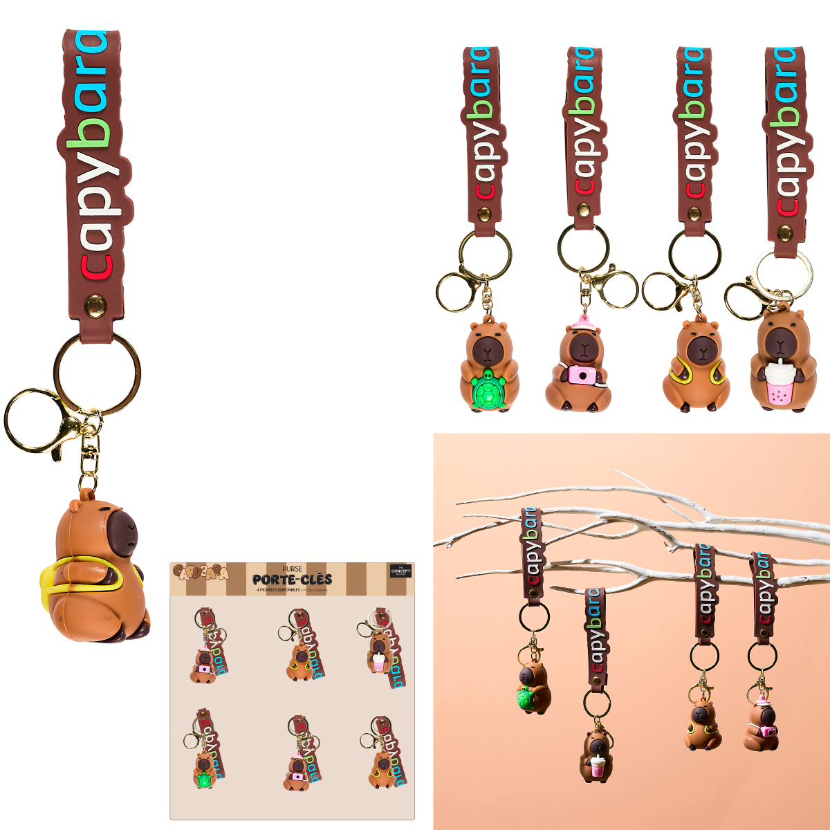 Schlüsselanhänger Capybara 4-fach assortiert