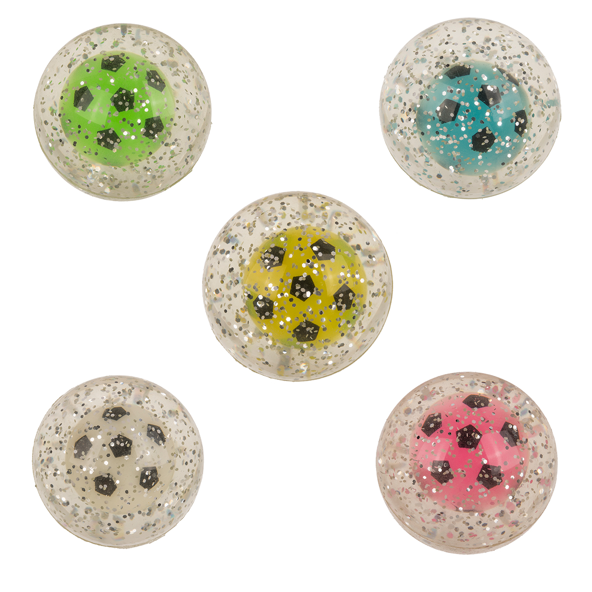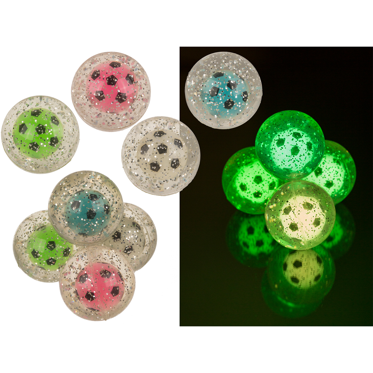 High Springball, Fußball, Glow in the Dark, ca. 5 cm, 4-farbig sortiert im Poybeutel, 16 Stück im Display