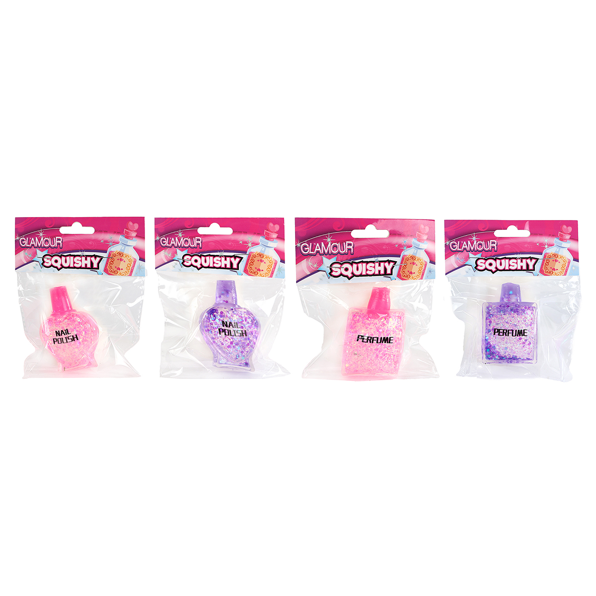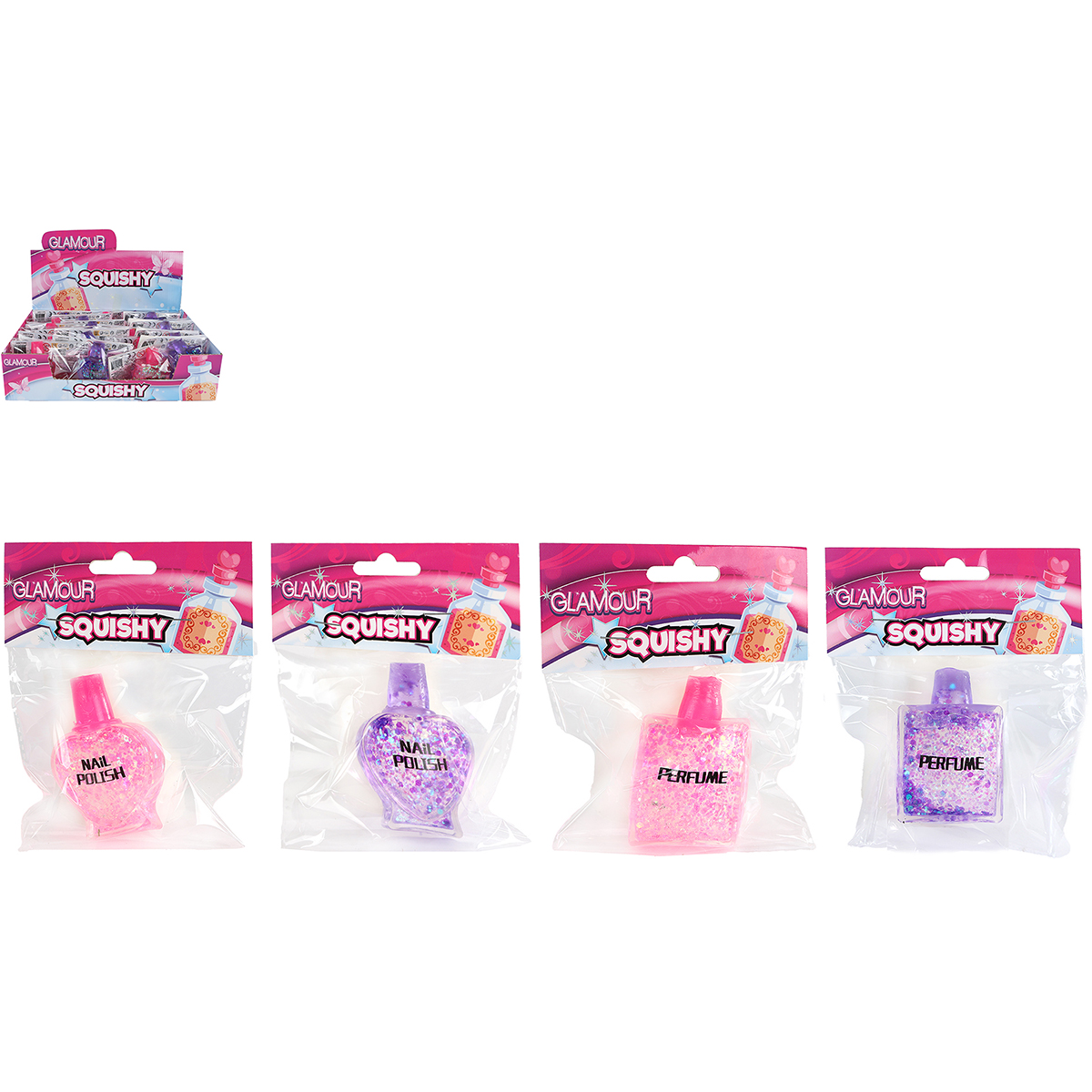 Squishy Parfum und Nagellack assortiert mit Glitzer 2-fach assortiert 7cm im Display.