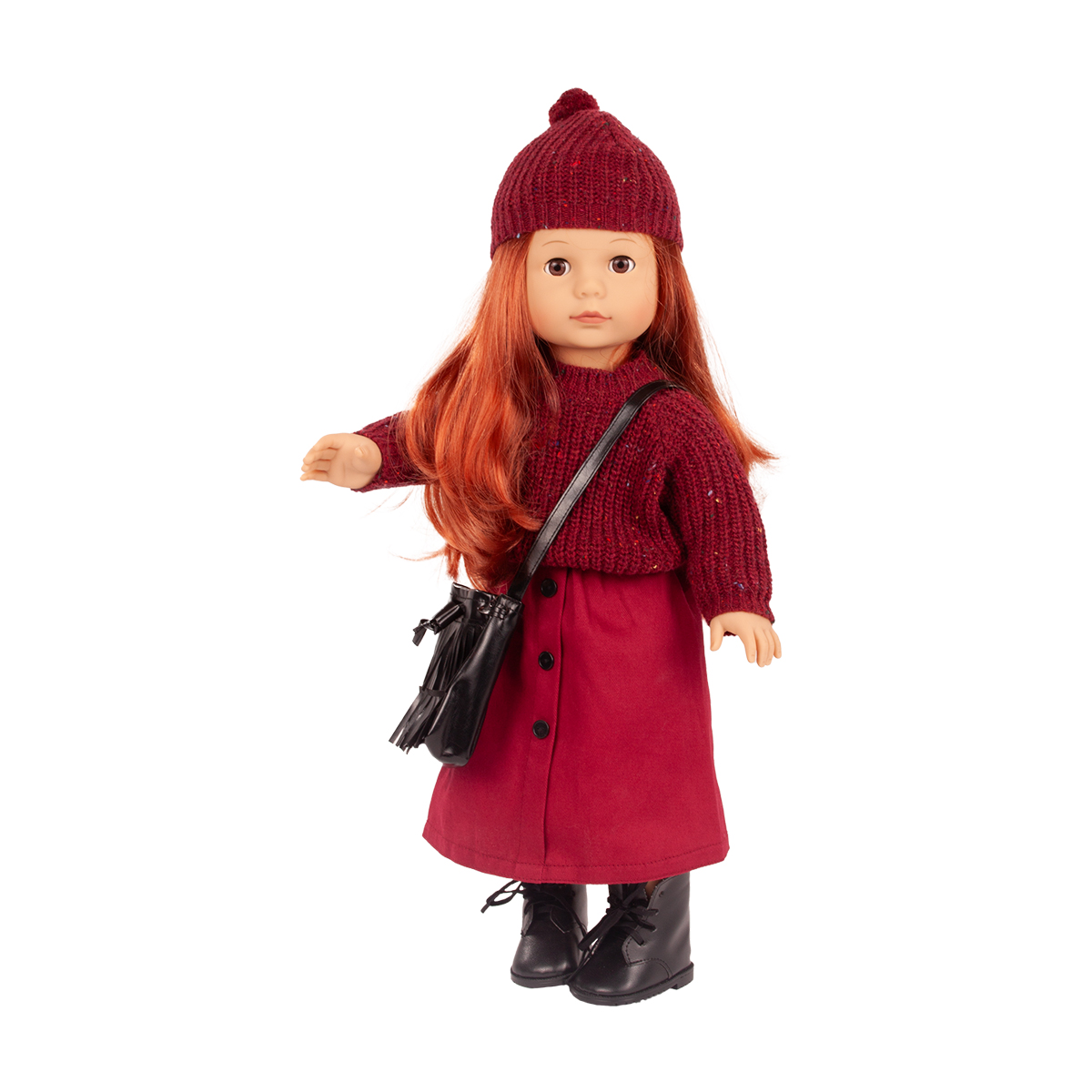 Diese Precious Day Puppe feiert das 75-jährige Jubiläum. dazu trägt sie ein elegantes Set in Bordeauxrot, bestehend aus einem Rock, Pullover und Strickmütze. Abgerundet wird ihr Look mit einer schwarzen Umhängetasche und schicken Stiefeln. Diese Jubiläumsedition ist ein wahres Highlight und ein perfektes Geschenk für kleine Puppenliebhaber. Bestehend aus: Rock, Strickpulli, Strickmütze, Stiefel, Tasche, Unterhose, waschmaschinen- & trocknergeeignet