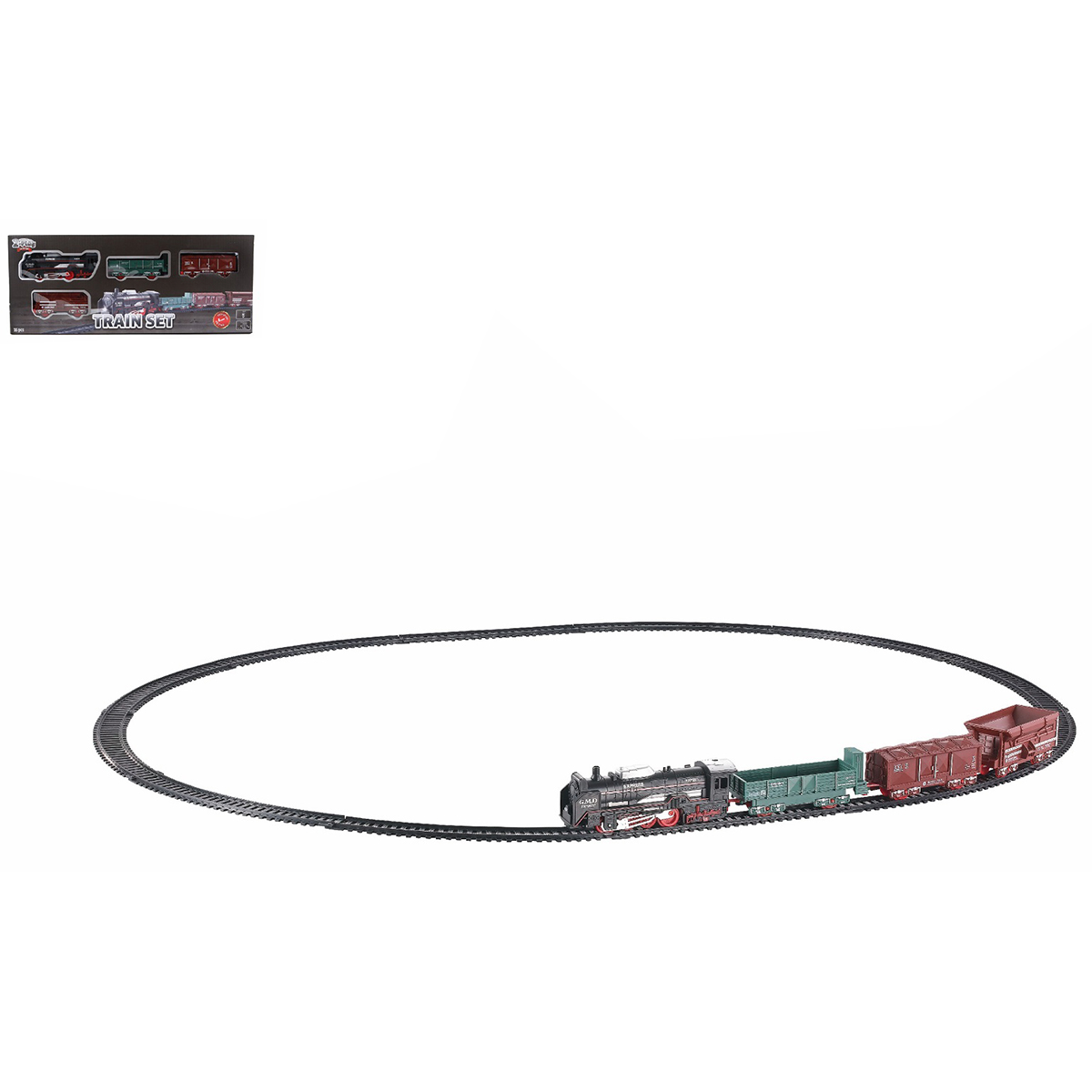 Lokomotivset mit Licht, 3 Anhängern und Schienen, 16 Teile, 45cm, exklusive 2x AA Batterien.