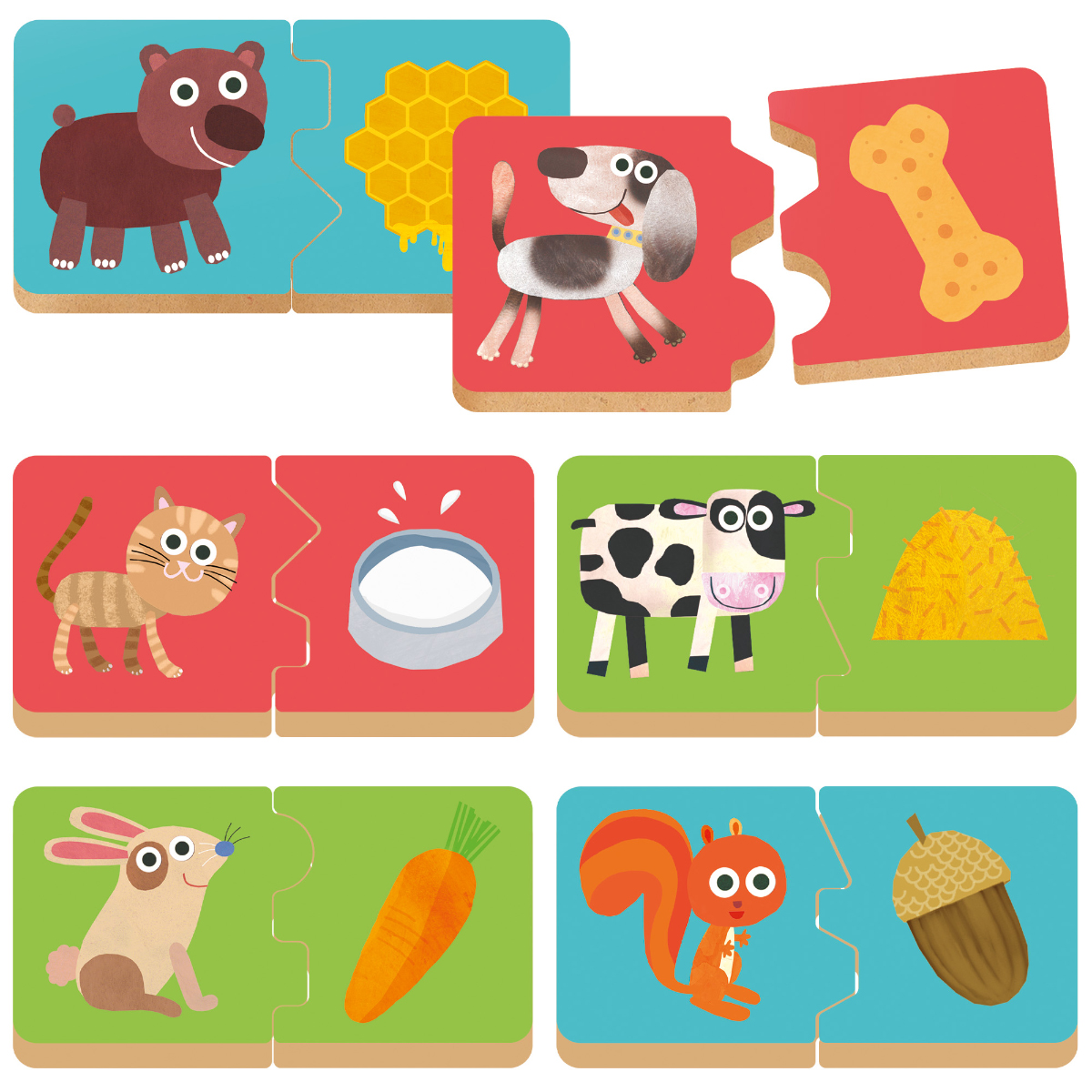 Was liebt die Katze? Und was frisst der Welpe? Viel Spaß beim Zuordnen der kleinen Tiere zu ihrem Lieblingsfutter! Das Spielzeug ist aus robustem Holz gefertigt und verfügt über spezielle Gelenke. Fördert logisches Denken, entwickelt die Feinmotorik, hilft beim Erkennen von Tieren und ihrem Lieblingsfutter. Primäre Intelligenz: logisch-mathematisch. Weitere Intelligenzen: körperlich-kinästhetisch und naturalistisch. Inhalt 12 Teile