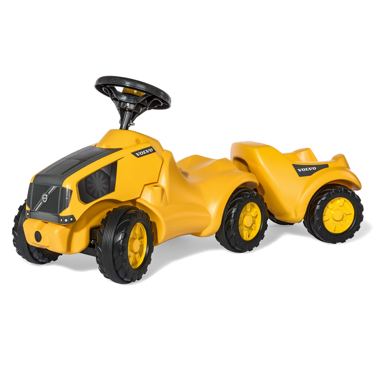 Entdecken Sie den rollyMinitrac Volvo für Kinder im Alter von 1½ bis 4 Jahren! Dieses innovative Fahrzeug vereint Spass, Sicherheit und praktische Funktionen, welche die Entwicklung Ihres Kindes fördern. Die Motorhaube kann geöffnet werden, um neugierige kleine Köpfe in die faszinierende Welt der Mechanik eintauchen zu lassen. Ein kleines Ablagefach unter der Motorhaube bietet Platz für Spielzeug oder Snacks für unterwegs. Die ergonomische Fahrzeugkontur sorgt für eine bequeme und sichere Fahrt, während die Kniemulde dem Kind zusätzlichen Halt gibt. Die optimierte Wendekreisführung durch die Achsschenkellenkung ermöglicht müheloses Lenken, was die motorischen Fähigkeiten Ihres Kindes verbessert. Die Flüsterlaufreifen garantieren eine sanfte Fahrt sowohl drinnen als auch draussen, ohne lästigen Lärm. Das Lenkrad mit Hupe weckt den Entdeckergeist und lässt Ihr Kind spielerisch die Kontrolle übernehmen. Inklusive Anhänger ermöglicht er so endlose Abenteuer und fantasievolles Spielen. Dieser Babyrutscher fördert die körperliche Aktivität, die Koordination und die Vorstellungskraft Ihres Kindes, während es in einer sicheren und unterhaltsamen Umgebung spielt. Bereiten Sie sich darauf vor, unvergessliche Momente der Freude zu erleben, während Ihr kleiner Entdecker die Welt erkundet!