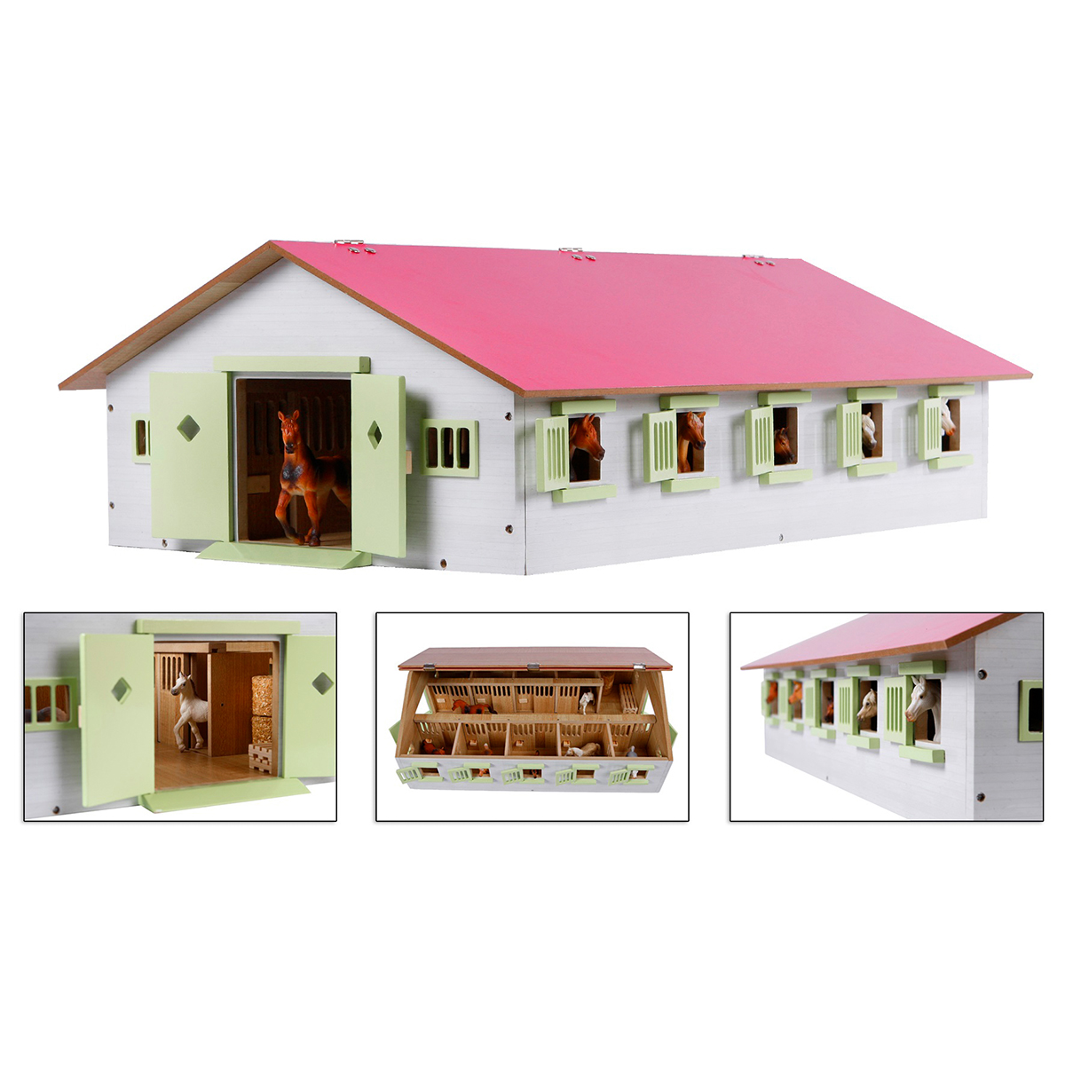 1:32 Étable rosé en bois avec 9 boxes 62x42.5x22cm.