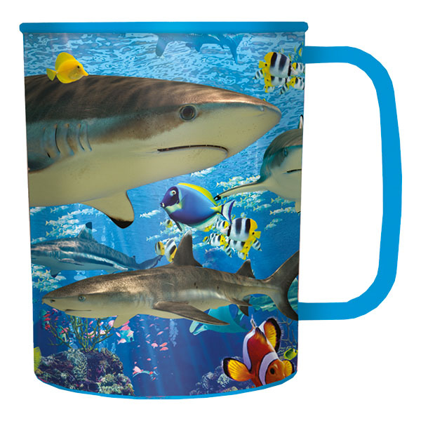 3D Mug Shark Reef. Les enfants adorent utiliser ces tasses en plastique aux couleurs vives et à l'effet 3D incroyable. Contenance 325ml.