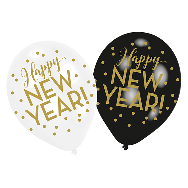 6 ballons Happy New Year: 3 chaque blanc ou noir