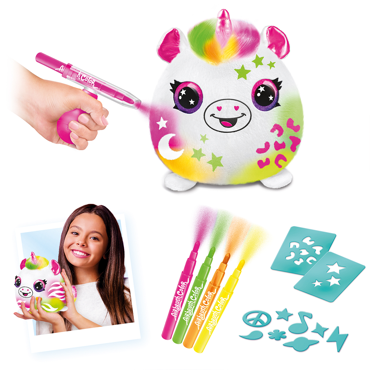 Personnalise ta peluche avec ton pulvérisateur, tes feutres et tes pochoirs. Lave ta peluche et recommence ! 3 peluches à collectionner ! Inclus : 1 peluche Squishy, 1 pulvérisateur, 4 feutres, 1 paire de gants, 50 pochoirs, 1 mode d'emploi