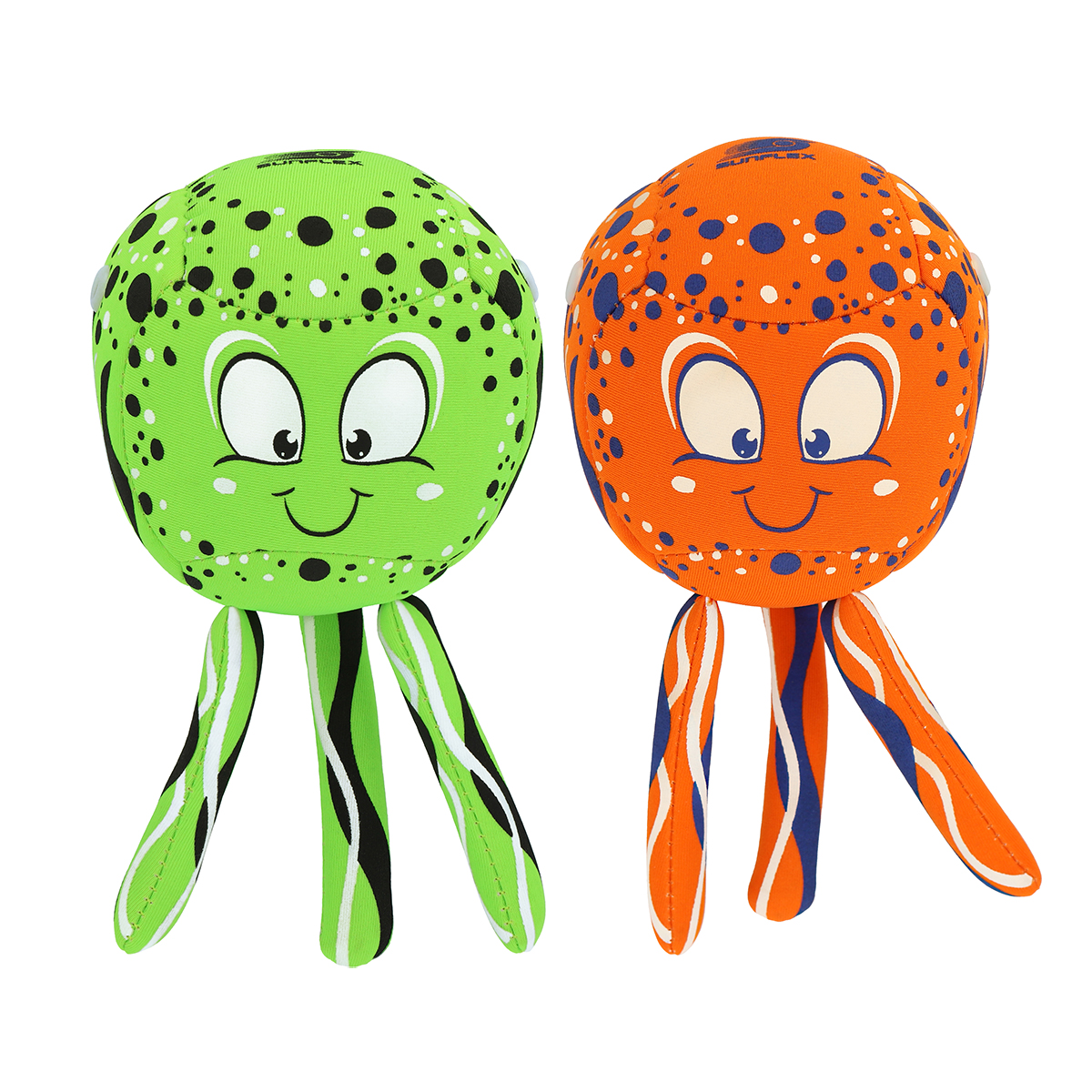 La balle descend de plus en plus vite après avoir été immergée dans l'eau. Pendant l'immersion, attrape l'article avant qu'il n'arrive au fond de la piscine. Diamètre de 9 cm. Balle avec tentacules. Remplie de mousse en haut et de sable en bas, avec des trous sur le dessus pour que la mousse puisse être remplie d'eau et recouverte de néoprène.
