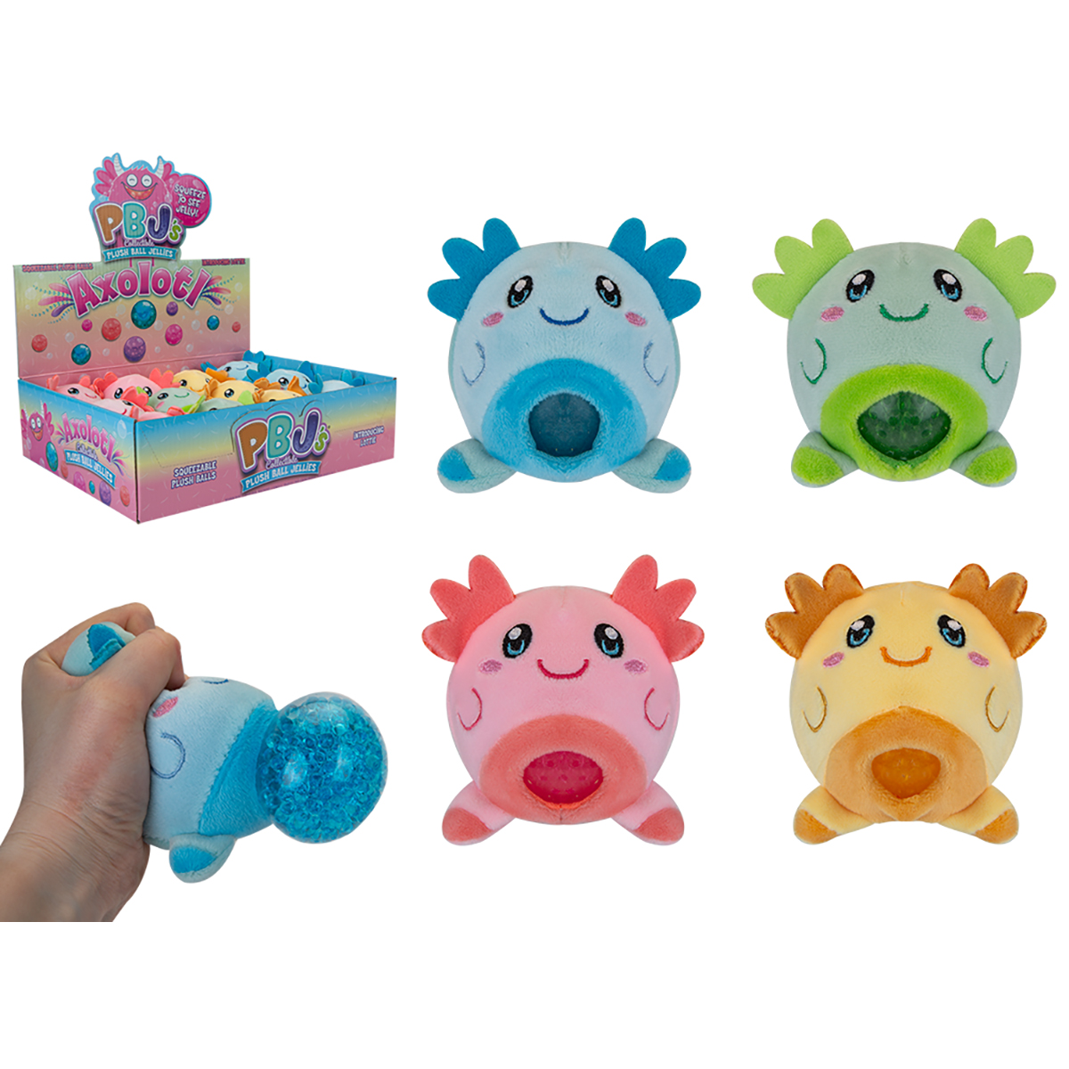 Axolotl Peluche jelly balle 8cm 4-fois assortis en display.