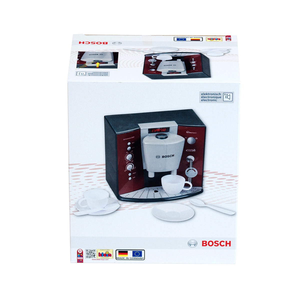 Machine à café BOSCH avec le son et Service à café. Le set comprend deux tasses de café, deux soucoupes et deux cuillères à café. Nécessite 2 piles AAA non fournies.