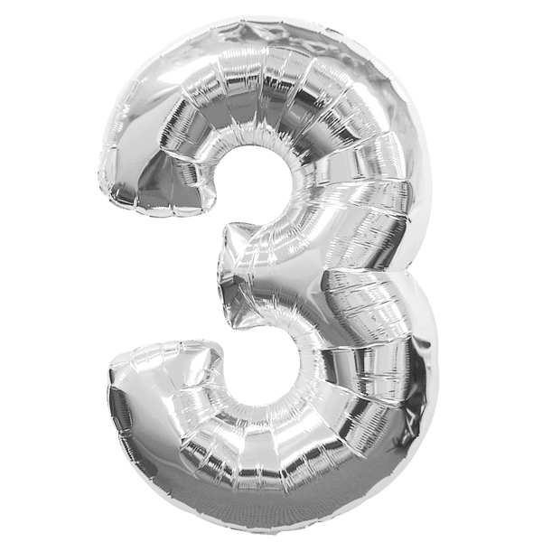 Ballon feuille en argent Numero 3 Taille: 86 cm Le ballon parfait pour l'anniversaire. Un ballon de feuille résistant avec soupape à fermeture automatique. Le ballon a installé une valve et peut être gonflé à plusieurs reprises.