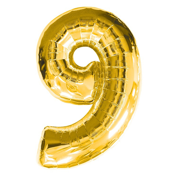 Ballon feuille en or Numero 9 Taille: 86 cm Le ballon parfait pour l'anniversaire. Un ballon de feuille résistant avec soupape à fermeture automatique. Le ballon a installé une valve et peut être gonflé à plusieurs reprises.