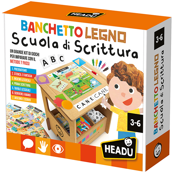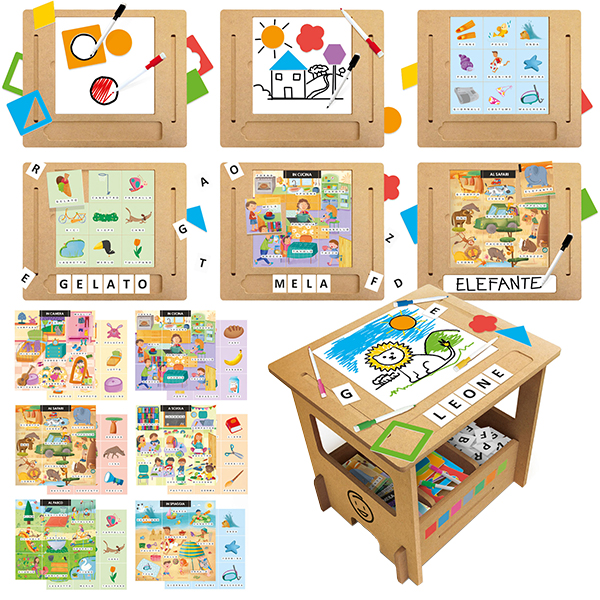 Un banquet en bois pratique conçu pour que les enfants d’âge préscolaire puissent réaliser diverses activités en toute autonomie. Les enfants apprennent à écrire, dessiner et lire plus d’une centaine de mots avec la méthode originale en sept étapes.
