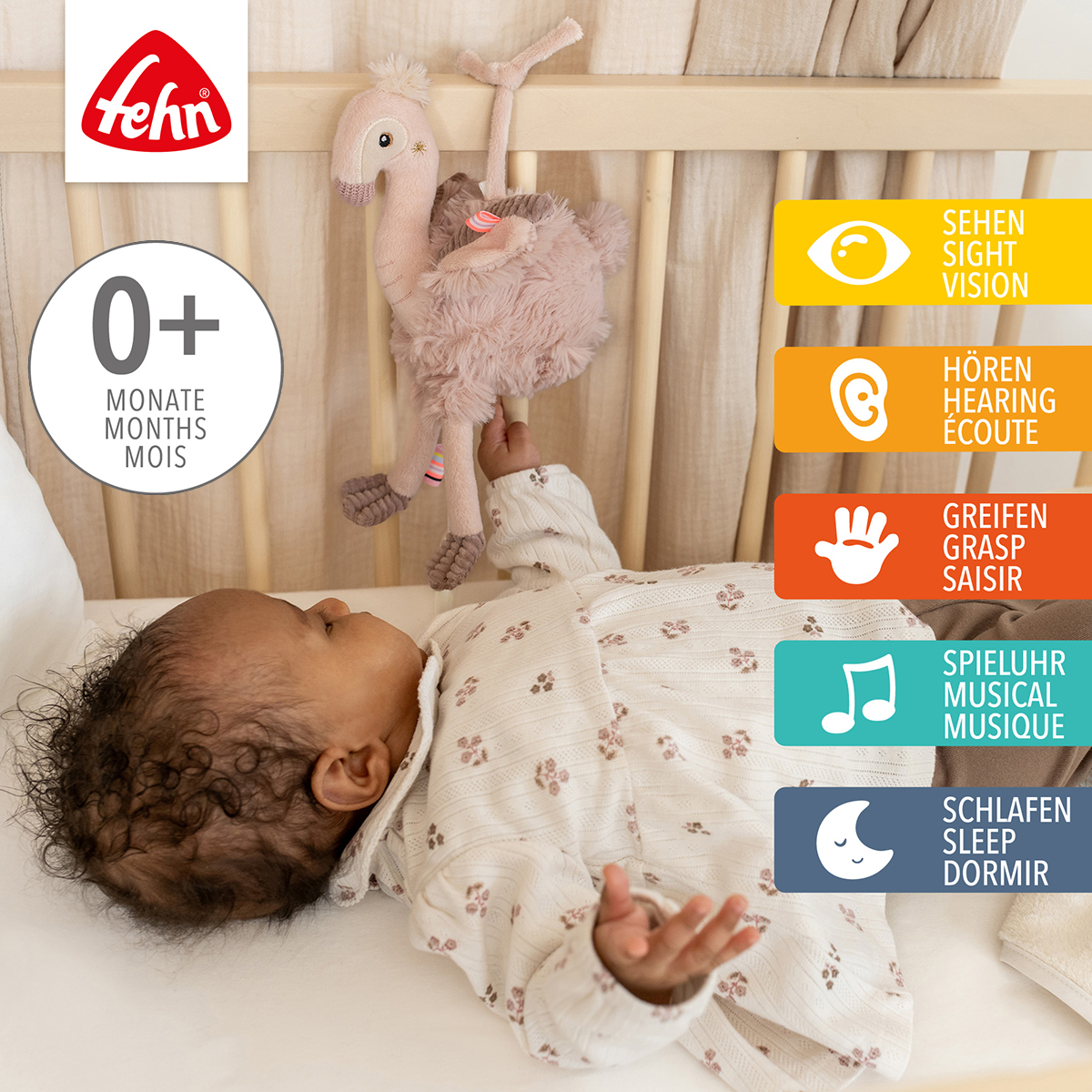 Le flamant rose câlin de la collection Lazy, Crazy & Pink n’est pas seulement un compagnon fidèle, il réconforte et apaise également avec sa douce mélodie de sommeil "Dors, petit enfant, dors"! Grâce à la taille pratique et aux sangles de fixation, vous pouvez emporter le flamant rose en peluche partout avec vous. Ressentir, câliner et aimer: il devient rapidement le meilleur ami de Bébé!