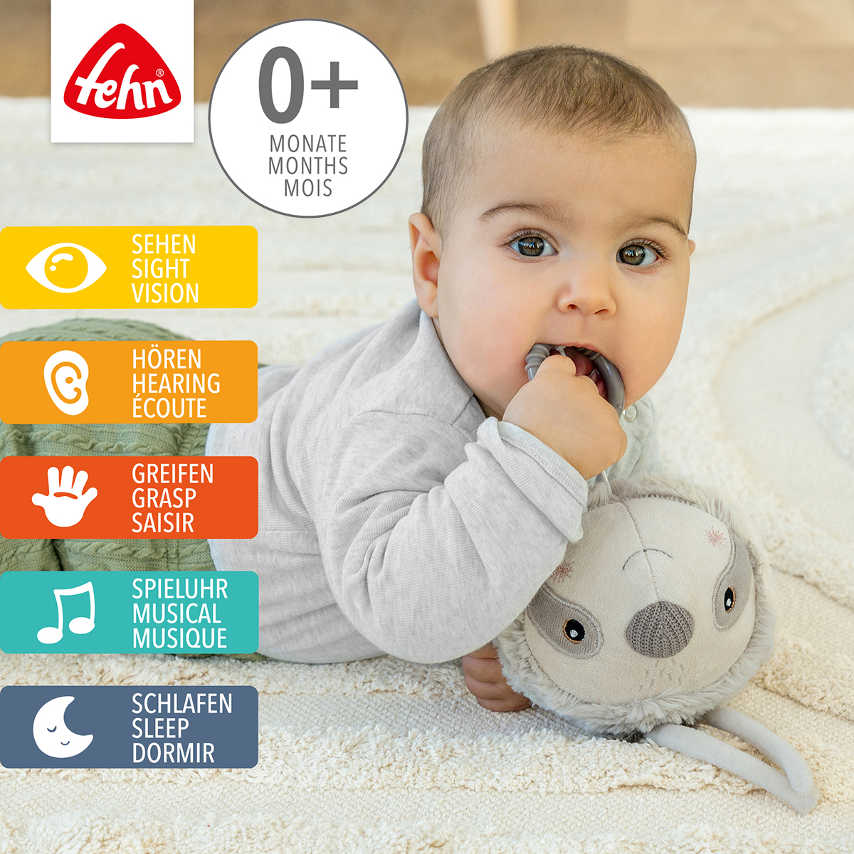 Le paresseux câlin de la collection Lazy, Crazy & Pink n’est pas seulement un compagnon fidèle, mais il réconforte et apaise également avec sa douce mélodie de sommeil "Good evening, good night (Brahms Lullaby)"! Grâce à la taille pratique et aux sangles de fixation, vous pouvez emporter le paresseux en peluche avec vous partout où vous allez. Sentir, câliner et aimer: il devient vite le meilleur ami de bébé!