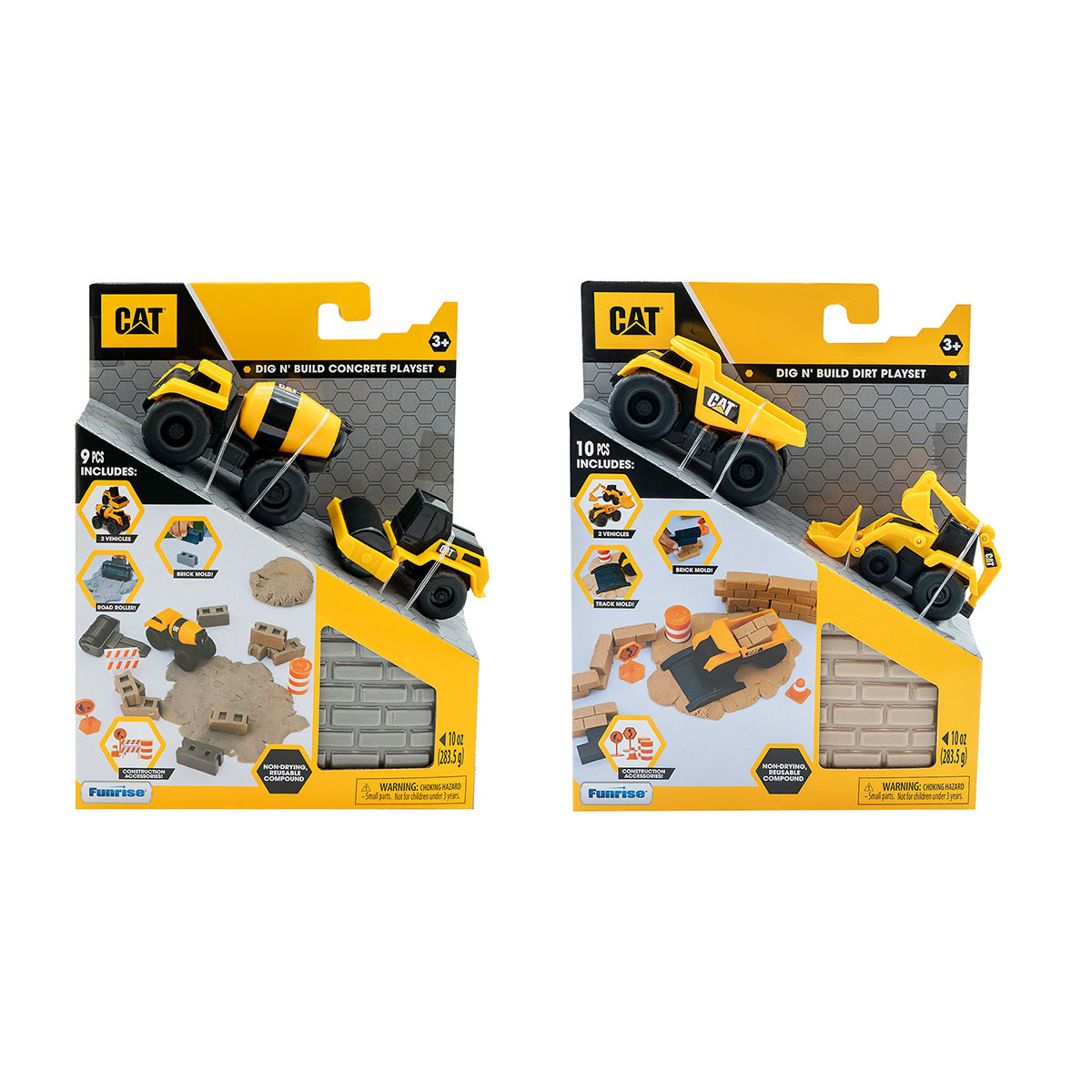 CAT Set de chantier avec véhicules de chantier, moules, sable et accessoires. 2-fois assortis.