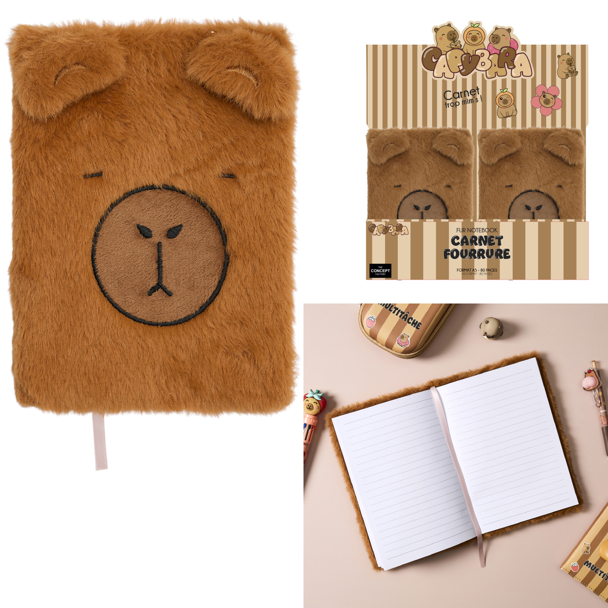 Carnet en peluche capybara, format A5, ligné