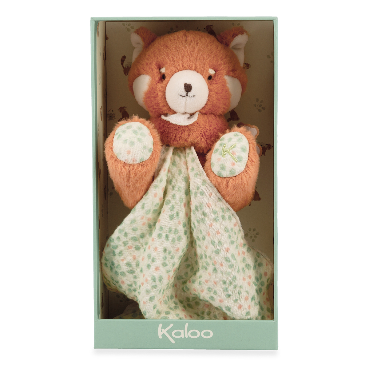 Ce doudou panda roux avec son lange accompagne bébé dans son rituel du sommeil. Il va devenir un repère rassurant pour bébé et transformer le moment du coucher en moment de sérénité. Sa taille de 12 cm le rend facile à agripper et son poil doux en fourrure et sa queue permettent une meilleure préhension pour bébé. Il est présenté dans une jolie boîte cadeau, personnalisable grâce au petit encart présent sous le couvercle. Le coffret peut être réutilisé comme boîte de rangement ou pour conserver les premiers souvenirs de bébé, dans une boîte assortie à son doudou préféré. Ce doudou contient au moins 80% de matières et rembourrage recyclé. Lavable en machine à 30°C. Dès la naissance.