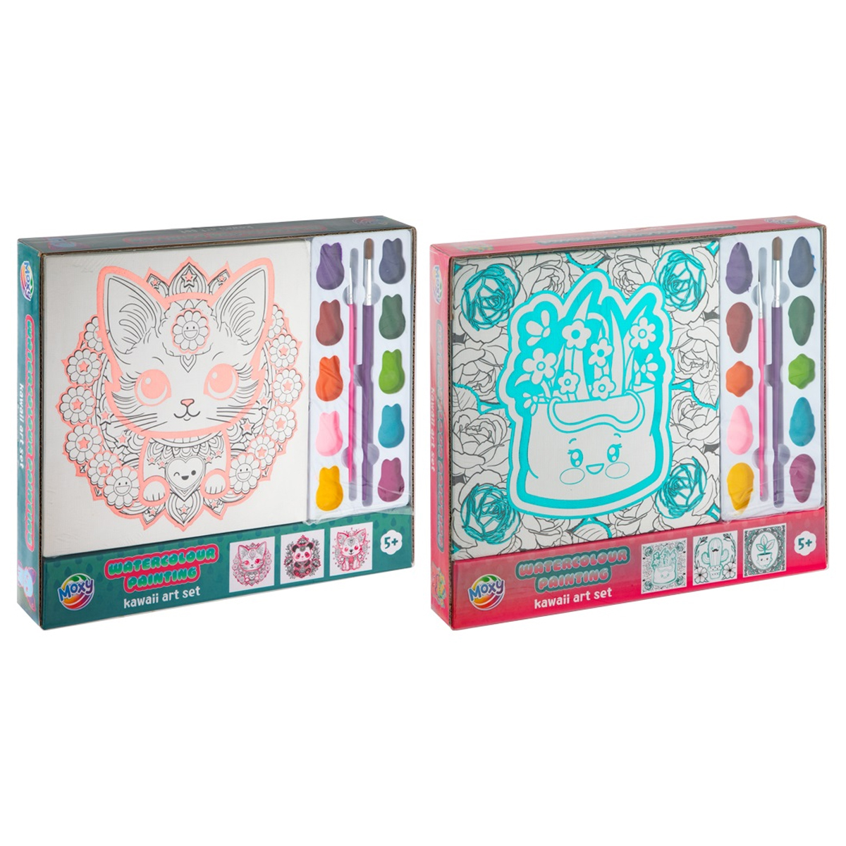 Ensemble artistique peinture à l'eau Kawaii Art 2-fois assortis, Canvas 19.5x19.5cm, Age 5+.