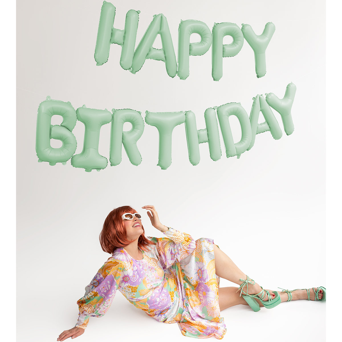 Ballon en aluminium mat Happy Birthday vert, dimensions env. 340 x 35 cm. À gonfler à l'air. Le ballon est auto-scellant et dispose de 4 crochets pour une fixation facile à un ruban.