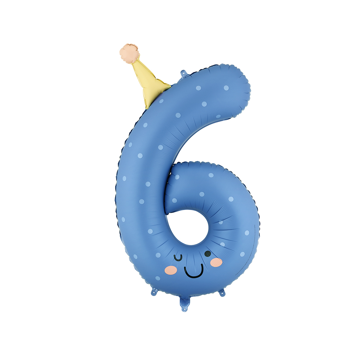 Ballon mat en forme de chiffre 6 bleu avec un bonnet coloré. Taille avant gonflage : environ 95 cm, taille après gonflage : environ 86 cm. À remplir d'air ou d'hélium. Le set comprend une paille.