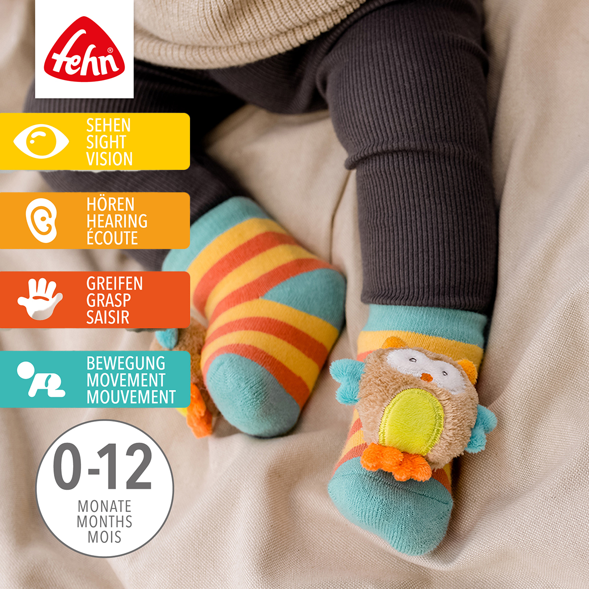 Le grand rasselsöckchen laissa les coeurs de bébé battre plus vite. Les matières douces réchauffent la peau de bébé et fournissent une chaleur agréable. Les hiboux claquent en faisant des bêtises et encouragent votre bébé à garder ses pieds en mouvement.