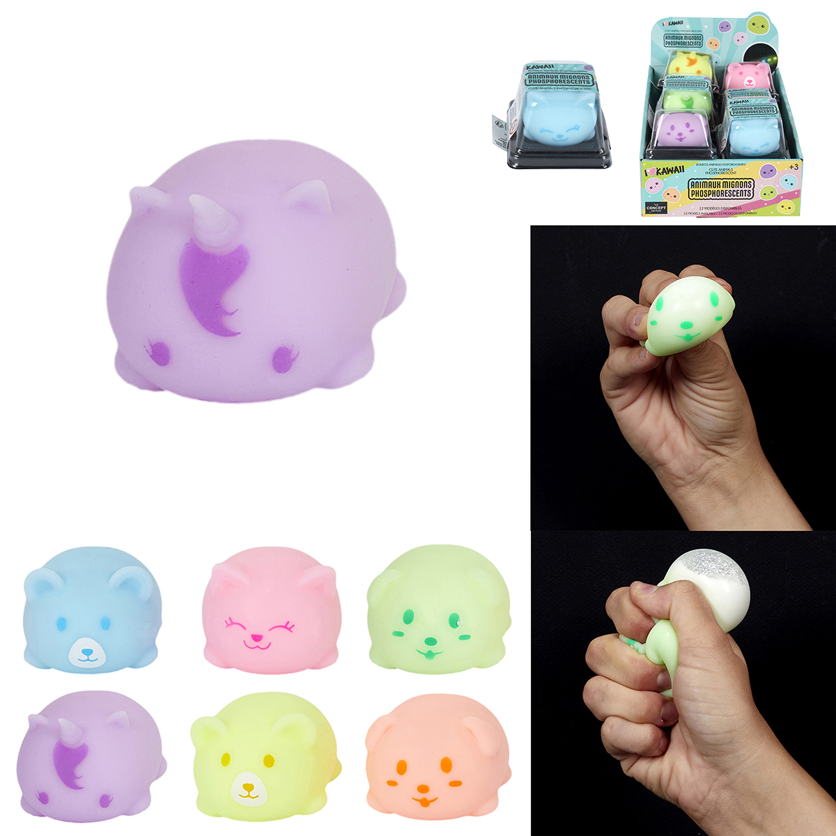 Kawaii animaux à presser en display assortis à 6. Ils brillent dans l'obscurité.