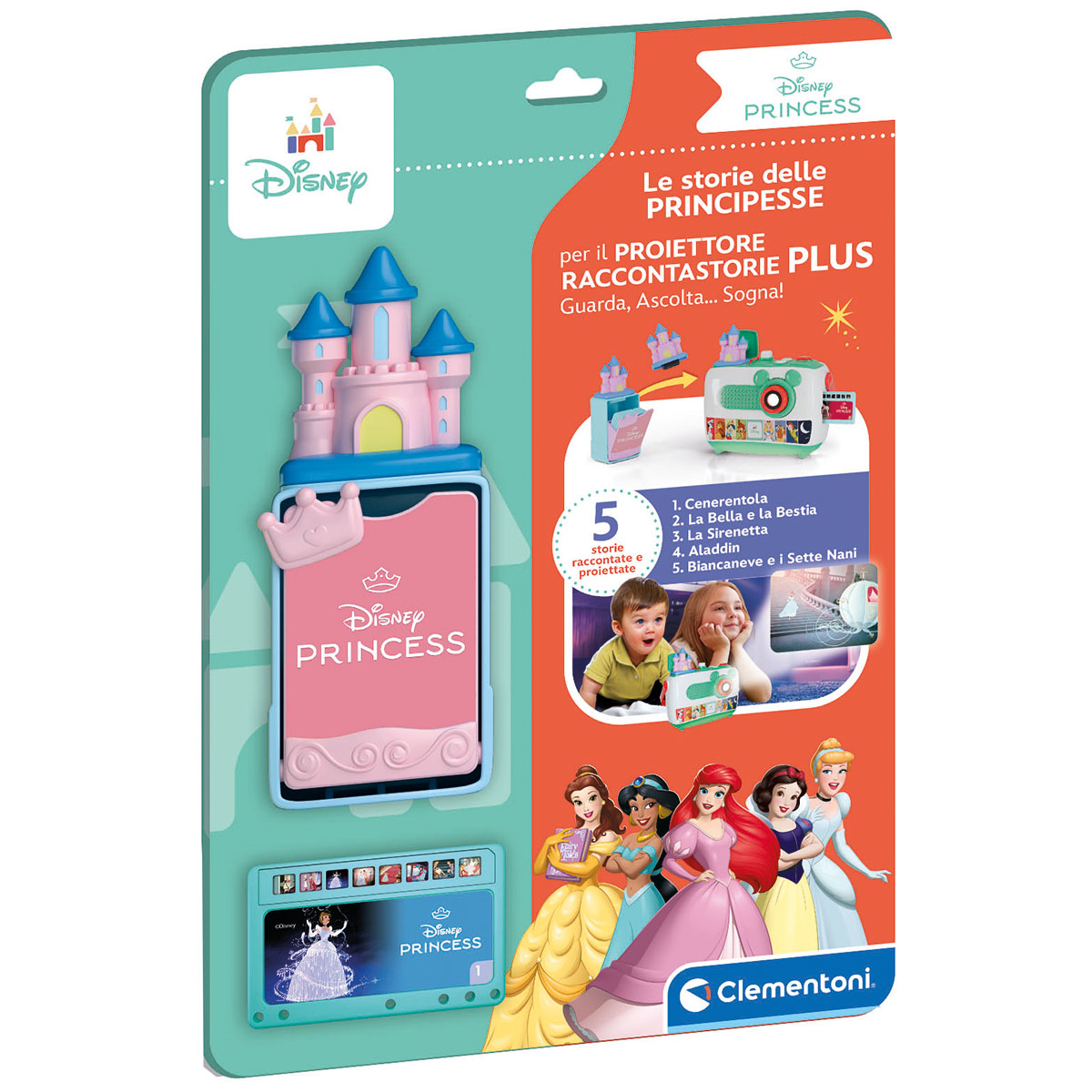 Una scatola con storie aggiuntive per il proiettore Disney PLUS. Contiene 5 schede con storie divertenti e una piccola statuina da agganciare al proiettore per godersi i contenuti aggiuntivi. Ogni scheda proietta 8 diapositive con immagini originali dei cartoni animati Disney. Una volta ascoltata la storia, riponi la scheda nell'apposita scatolina, cambia personaggio e ricomincia. Colleziona tutti i personaggi!