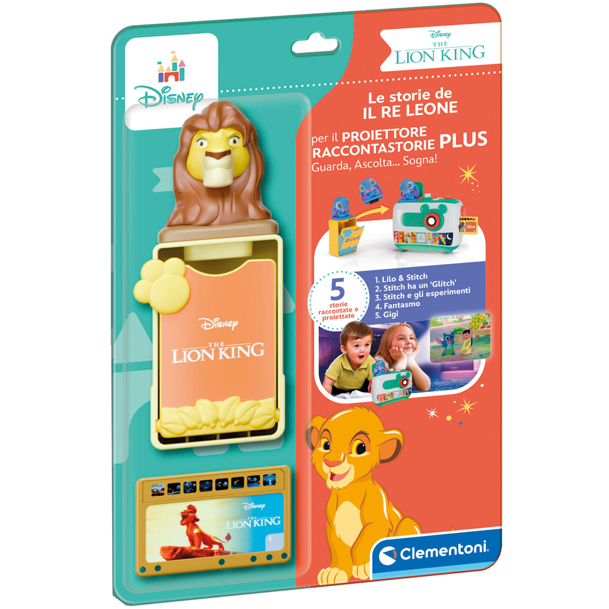 Una scatola con storie aggiuntive per il proiettore Disney PLUS. Contiene 5 schede con storie divertenti e una piccola statuina da agganciare al proiettore per godersi i contenuti aggiuntivi. Ogni scheda proietta 8 diapositive con immagini originali dei cartoni animati Disney. Una volta ascoltata la storia, riponi la scheda nell'apposita scatolina, cambia personaggio e ricomincia. Colleziona tutti i personaggi!