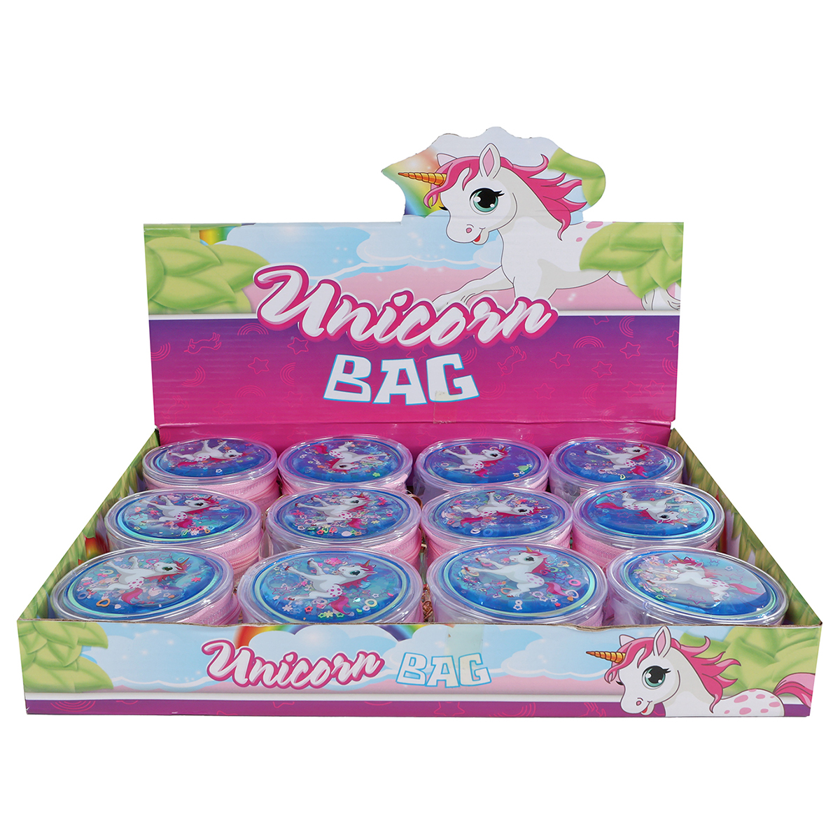 Licorne portemonnaie ronde 8.5cm en display.
