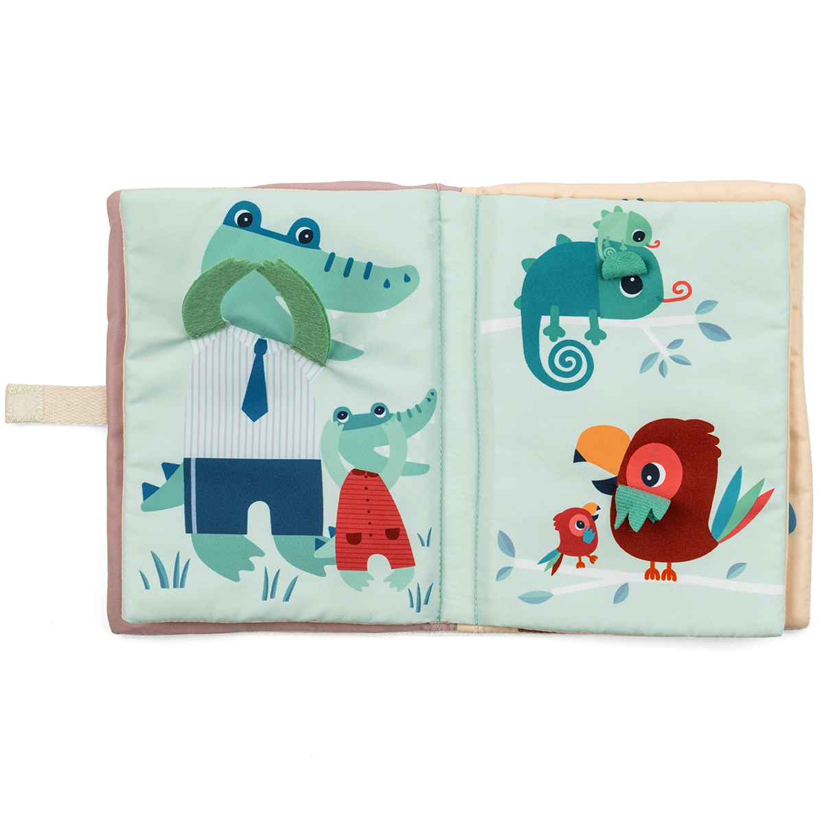 Sur chaque page de ce livre en tissu, un personnage joue à cache-cache en se couvrant les yeux : le lion avec ses pattes, le lémurien avec sa queue et, sur la dernière page, une grande surprise se cache derrière les grandes oreilles de l'éléphant. Les enfants s'amusent à soulever ou à déplacer les éléments pour découvrir les yeux et participer au jeu !