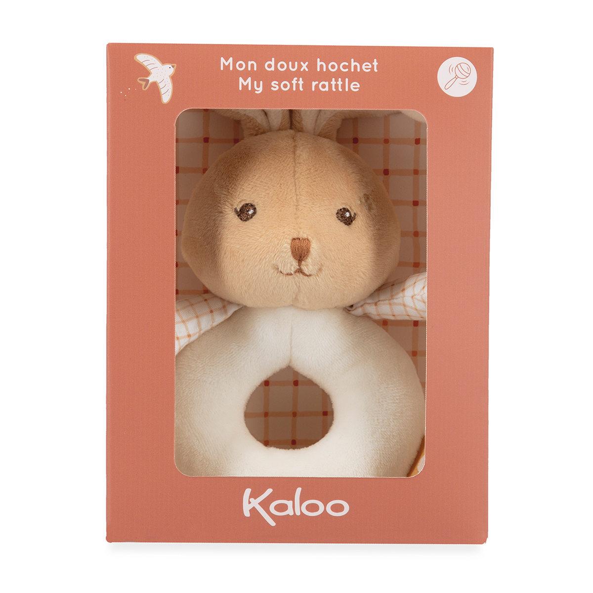 Découvrez cet adorable lapin hochet en fourrure toute douce crème. Son doux grelot stimulera les sens de bébé, lui permettant de développer sa motricité fine. D'un beau coloris crème, son corps en forme d'anneau est pensé pour offrir une meilleure préhension à bébé. Son motif vichy sur les bras ajoute une touche d'élégance. Mesurant 12,5 cm, ce hochet est composé d'au moins 80% de matières et rembourrage recyclé. Dès la naissance, Lavage en machine à 30°C.