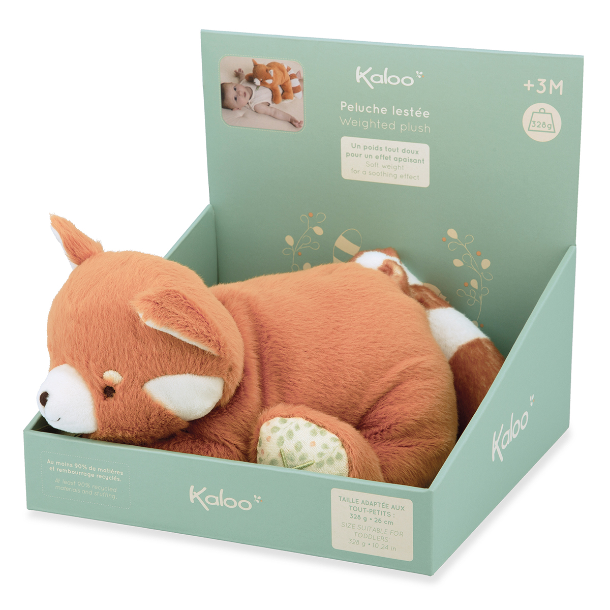 Cette peluche lestée panda roux est pensée pour accompagner bébé dans son rituel du sommeil. Tendre et rassurante, elle apaise bébé en lui procurant une sensation d'enveloppement grâce à son poids de 328g adapté et sécurisé. Elle apporte une sensation de réconfort, idéale pour transformer le moment du coucher en moment de sérénité. Sa taille de 28 cm et son poil en fourrure garantissent de gros câlins tout doux. Ses jolies formes arrondies permettent une meilleure préhension pour bébé. Cette peluche contient au moins 90% de matières et rembourrage recyclé. Lavable en machine à 30°C.
