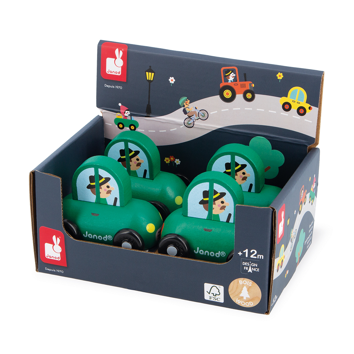 Il est dimanche matin, allons chercher le pain avec papi à bord de sa petite voiture ! Imaginez de belles histoires avec cette voiture en bois. La forme de la voiture est réalisée pour une meilleure préhension. Jouet en bois FSCTM, pour les enfants à partir de 12 mois. Associé à ton tapis et au joli coffret de cube de la gamme Janod, ce roulant complète parfaitement ton univers.
