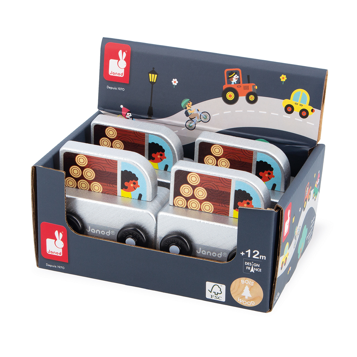 Après une dure journée le bûcheron rentre chez lui avec la remorque remplie de bois ! Avec ce pick up en bois c'est parti pour des heures de jeu à imaginer de nombreuses histoires. Grâce à sa forme, le pick-up est facile à prendre en main pour les tout petits. Jouet en bois FSCTM, pour les enfants à partir de 12 mois. Associé à ton tapis et au joli coffret de cube de la gamme Janod, ce roulant complète parfaitement ton univers.